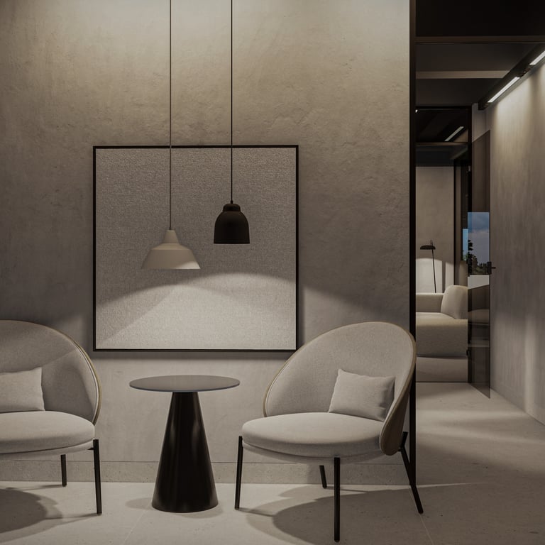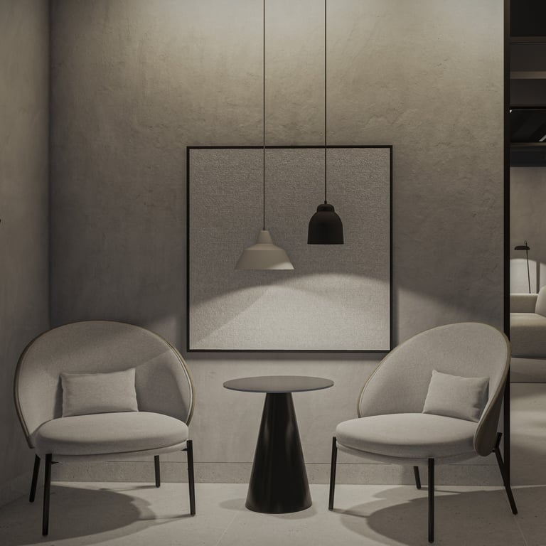 Razrađujemo vizualni identitet prostora kroz stil, paletu boja, materijale, namještaj i rasvjetu. Izrađujemo 3D vizualizacije koje prikazuju kako će prostor izgledati prije same izvedbe. Cilj je dobiti jasnu sliku atmosfere i estetike prema željama klijenta.